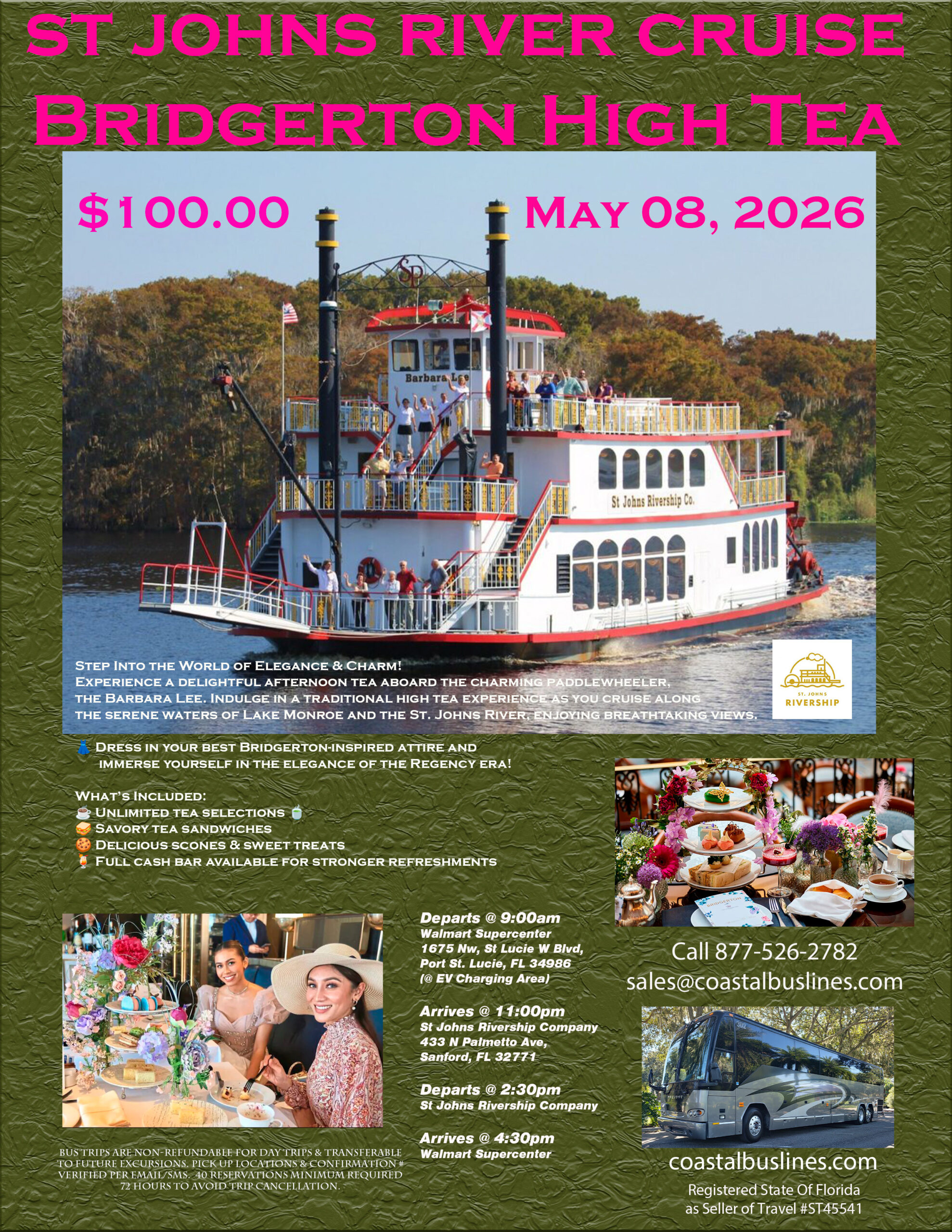 Coastal Bus Lines home base is in the city of Port St Lucie FL, 45 minutes away from Palm Beach International Airport and 30 minutes away from downtown Stuart. Vehicles are also available to reach areas of Palm Beach, Orlando, Dayton Beach, Miami at others in this state of Florida and United States.